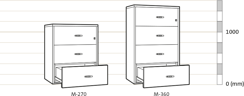 The Lateral Fire File range is constructed in a lighter weight construction, which means smoother transportation and installation, as well as lighter floor loads. The cabinets are equipped with high-quality steel sliders to ensure comfortable operation and full drawer access. Furthermore, there are steel-dividing plates between each drawer for an added protection.