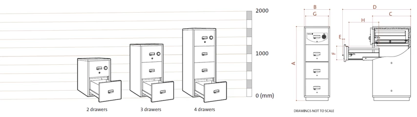 Overall body thickness of 57mm insulated with Chubbsafes patented PCDE fire resistant material. The cabinet is reinforced in critical areas to allow the cabinet to survive the impact from a fall. The drawers constructed with an overall thickness of 56mm.