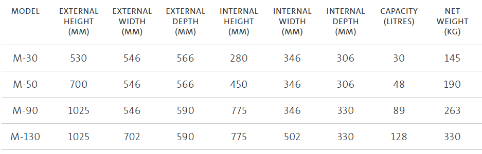 *External heights and depths include plinth and handle projection. **Internal heights and widths are also equal to the clear opening measurements.