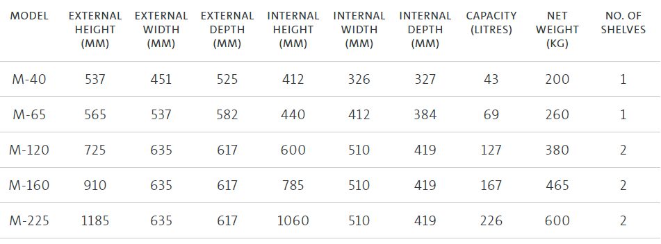 Comprehensive Protection: All models (small and large) provide superior protection against unauthorised entry and exposure to extreme temperatures.